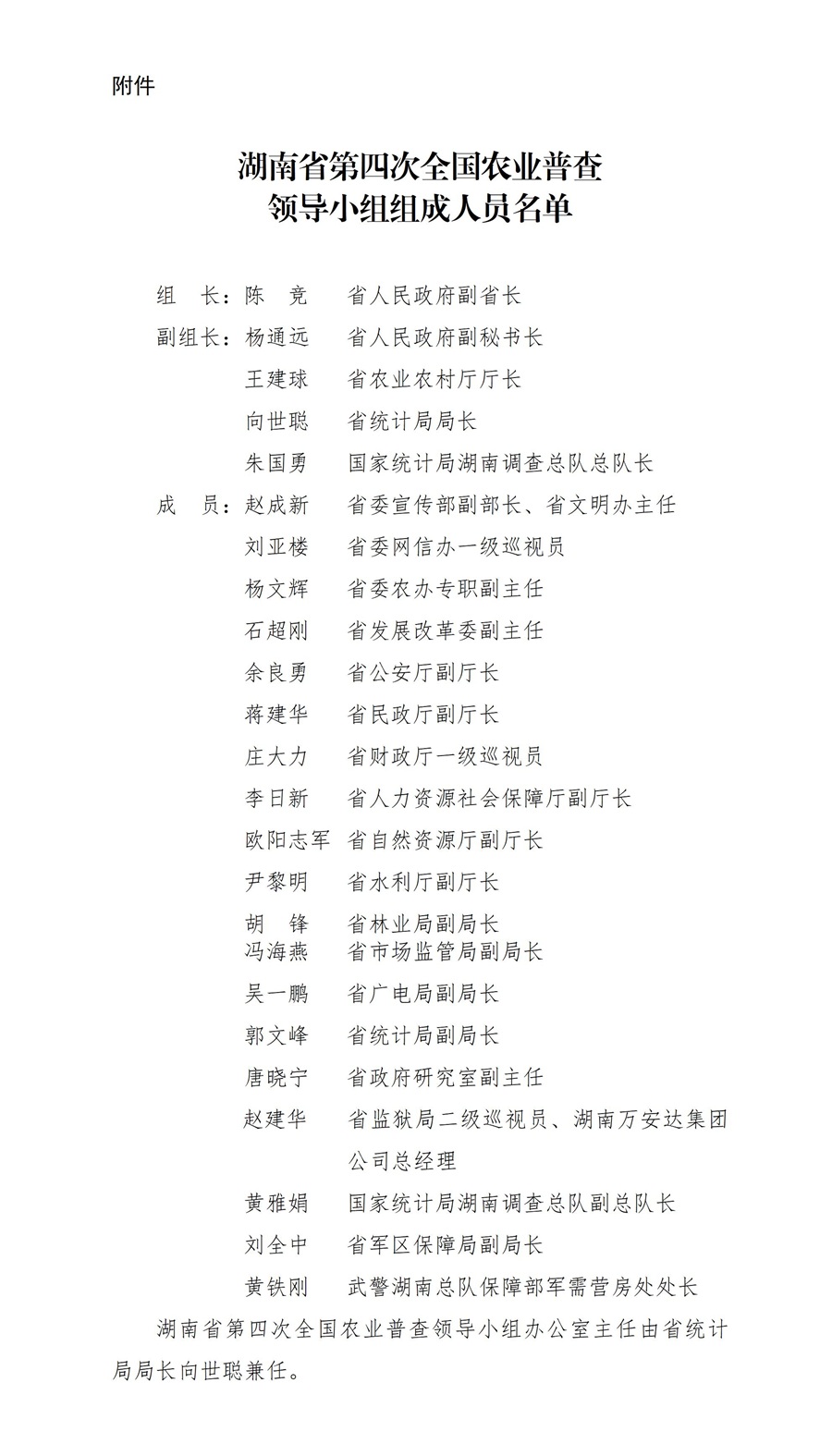 附件:湖南省第四次全國農業(yè)普查領(lǐng)導小組組成人員名單